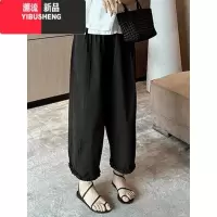 YIBUSHENG大码季新款糖果色松紧腰木耳边九分裤设计感时尚宽松显瘦休闲裤