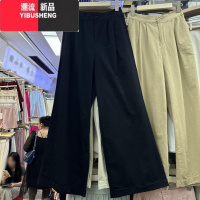 YIBUSHENG日系复古糖果色卷边简约洗水棉阔腿裤女高腰显瘦百搭直筒休闲裤