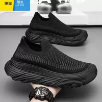 聚范男鞋秋季2024新款网面透气厚底运动男士一脚蹬轻便软底黑色袜子鞋