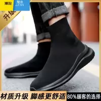 聚范高帮袜子鞋男款夏季2024新款飞织运动鞋夏款透气休闲黑色爸爸男鞋