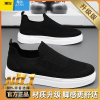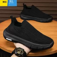 聚范男鞋秋季透气飞织网面黑色运动懒人一脚蹬袜子鞋轻便软底休闲潮鞋