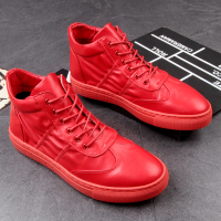 男士运动休闲鞋真皮韩版潮鞋红色系带男鞋青年潮流百搭低帮鞋子潮