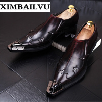 发型师皮鞋男鞋子秋季新品潮流内增高尖头皮鞋韩版英男伦金属包头DJ演出酷
