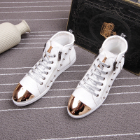 欧洲站男高帮鞋铆钉铁头金属潮鞋发型师个性百搭白色男鞋系带圆头