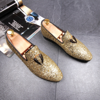 套脚休闲皮鞋尖头内增高男鞋懒人一脚蹬豆豆鞋亮片金属发型师潮鞋