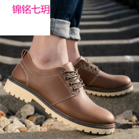 锦铭七玥男士英伦休闲工装鞋低帮金属潮流大头鞋百搭休闲男鞋防滑系带皮鞋