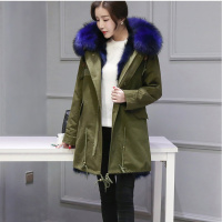 韩版千颂伊军绿色超大白貉子毛领皮草棉服派克大衣外套女