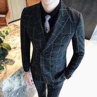 2017秋冬新款韩版英伦风高档男士大格纹单西便服修身小西服外套