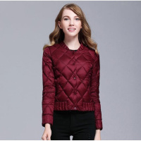 2017冬新款轻薄羽绒服女短款菱形格修身加大码韩版棒球服外套