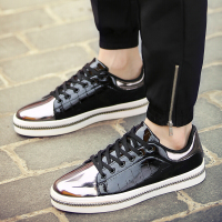 男士休闲鞋春季男鞋漆皮冲孔透气板鞋英伦小白鞋时尚特色潮鞋学生鞋亮面皮鞋潮男鞋子