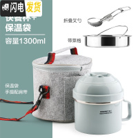 三维工匠304不锈钢保温饭盒学生食堂快餐杯泡面碗日式1人上班族便携便当盒 1300+菜格+叉勺-蓝灰色