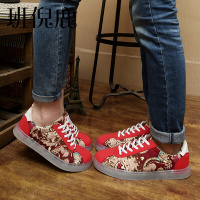 路蒙卡帝韩版低帮帆布板鞋男鞋女鞋情侣时尚中国风荧光夜光百搭花布单鞋休闲鞋鹿晗迪丽热巴跑男同款