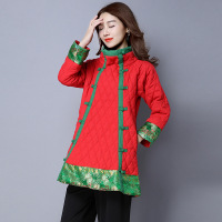 顺崇2017新款中式改良复古女棉衣双排盘扣刺绣撞色长款唐装棉袄