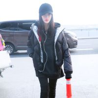 顺崇2017冬季新款李小璐机场明星同款短款连帽双色银灰色羽绒棉服女