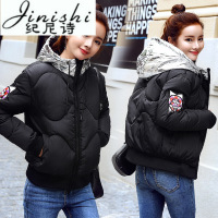 纪尼诗2018秋冬新款短款连帽双色金银色羽绒服女新款棉服
