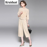 Kruidvat2017春新款欧美时尚炒色钉珠T恤+七分裤套005