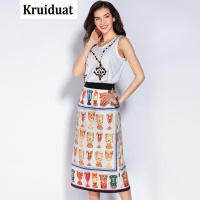 Kruidvat2017春季新款女裙套装欧美钉珠T恤印花半裙两件套MY01图片色