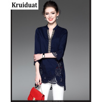 Kruidvat春装2017新款女通勤简约棉衬衣宽松钉珠中长T恤B078
