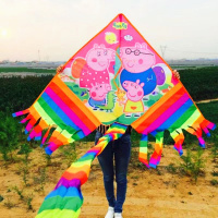 新款彩虹小猪佩奇风筝 微风易飞多尾儿童卡通大风筝 潍坊风筝