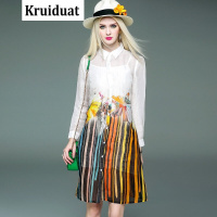 Kruidvat2017春夏季新款真丝麻连衣裙女中长款衬衫裙定位印花两件套裙HD黄色条