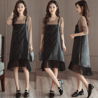 莞馨(wanxin)新款2016秋冬装连衣裙两件套装背带套裙学生冬季打底裙子中长裙学院风