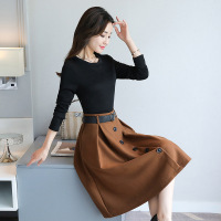 秋冬名媛女装针织连衣裙两件套毛衣裙中长款打底裙韩版时尚套装裙