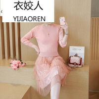 衣姣人(YIJIAOREN)女装新款淑女气质金丝绒拼接网纱吊带连衣裙修身长袖针织衫两件套套装裙粉红色均码