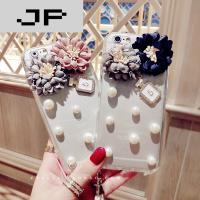 JP潮流品牌手工珍珠花iphone6splus手机壳全包透挂绳日韩pg6s软壳5.5钻大气
