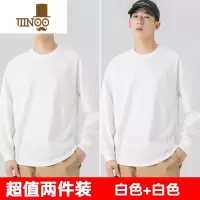 YANXU220g长袖T恤男纯色宽松款卫衣圆领白色内搭打底衫男