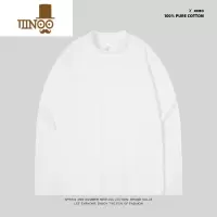 啄木鸟白色长袖t恤男纯棉秋季25新款宽松圆领休闲百搭打底衫卫衣
