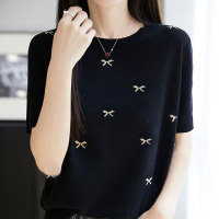 短袖T恤女夏季新款女装冰丝半袖薄针织衫法式时尚针织衫外搭