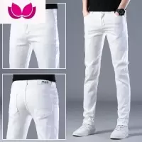 七斓夏薄款高端白色牛仔裤男士韩版潮流直筒长裤子潮牌修身弹力小脚裤