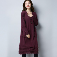 韩国秋冬厚实宽松粗线中长款套头大毛衣裙打底连衣裙灰色(不含内搭蕾丝裙)均码