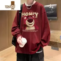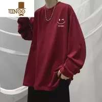 YANXU酒红色长袖t恤男款笑脸圆领卫衣美式潮牌内搭打底衫