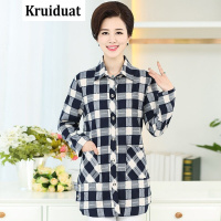 Kruidvat时尚2017年新款女士格子衬衫休闲妈妈装中老年妈妈外套40-50Z041