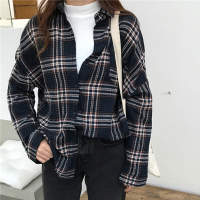2018秋季宽松格子衬衫女韩版休闲宽松学院风中长款衬衣CYLLSD