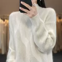 秋冬绞花加厚羊毛衫女半高领针织打底衫长袖套头加厚宽松毛衣潮