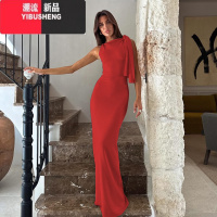 YIBUSHENG欧美风设计感绑带露肩无袖连衣裙女季气质高腰修身显瘦过膝长裙