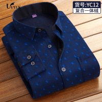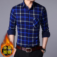 UYUK冬季男士保暖衬衫加绒加厚格子长袖衬衣中老年男装衬衫