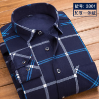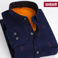 啄木鸟冬季男士加绒保暖衬衫中年商务羊毛上衣休闲加厚条纹衬衣男