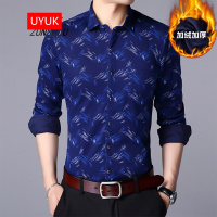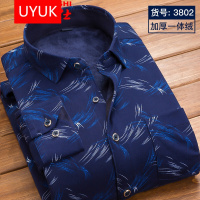 UYUK加绒衬衫男2017冬季新款青年商务休闲保暖长袖衬衣男修身加绒打底衫