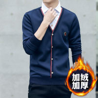 男式假两件毛衣男保暖2017秋冬季加绒加厚衬衫韩版学生帅气男装 藏青 L