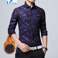 有衣有靠2017新款男士保暖衬衫男长袖印花加绒加厚修身衬衣秋冬季休闲衬衣青少年潮流寸衫