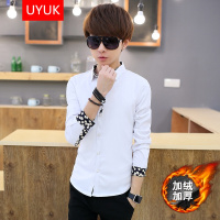 有衣有靠衬衫2017秋冬装长袖衬衫加绒衬衫男潮流青年修身帅气保暖打底衬衣男商务休闲衬衣