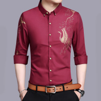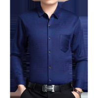 冬季新款加绒衬衣男士长袖无痕弹力印花加厚保暖休闲爸爸衬衫男