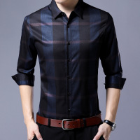 浅娜芬秋冬季男士保暖衬衫休闲格子长袖印花保暖修身男装加绒加厚衬衣男
