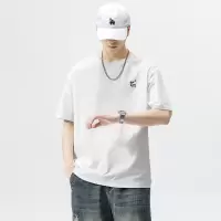 白色重磅短袖T恤男夏季宽松美潮休闲轻奢半袖圆领少年感体恤上衣