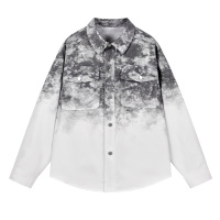 男装春秋季新款宽松长袖衬衫青少年潮牌痞帅翻领渐变情侣衬衣外套