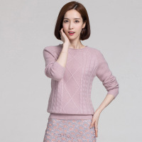 秋冬新款女士圆领纯色卷边麻花山羊绒衫原宿打底衫套头毛衣