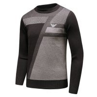 提花无规则格子羊绒衫男羊绒圆领加厚2017冬季新款山羊绒毛衣宽松黑色